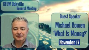 Our November 17 speaker is Investment Advisor Michael Bowen presenting: “What is money? A brief overview of its history and evolution to bring us to where we are today.”
